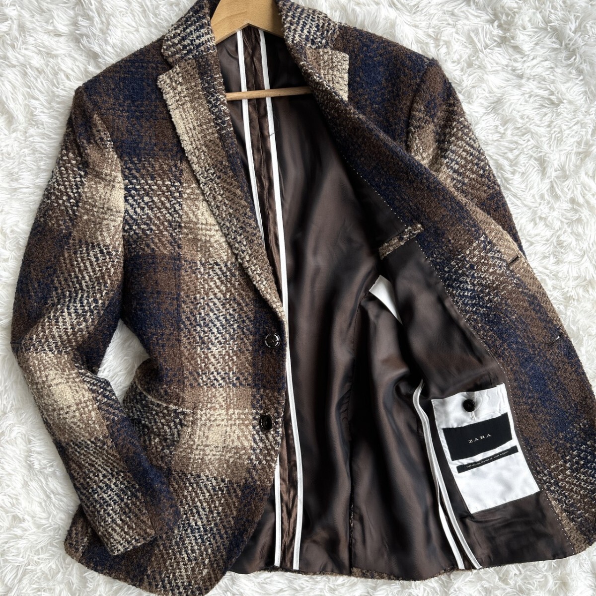 - 【洗練されたお洒落】ZARA MAN ザラ テーラードジャケット 肉厚 ツイード 凹凸素材感 48 Lサイズ相当 メンズ アンコン チェック 秋冬