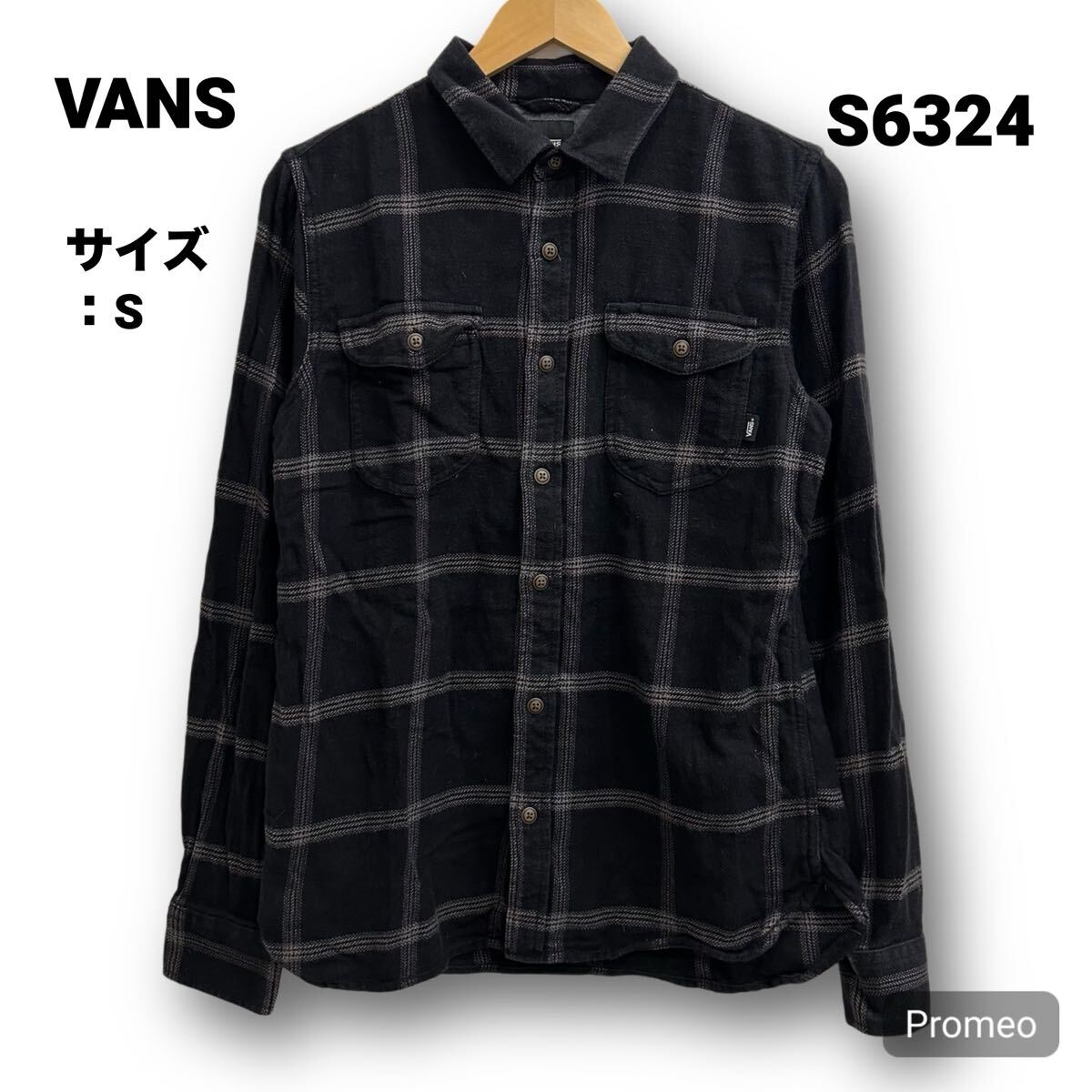 > 【S6324】 VANS ヴァンズ チェックネルシャツ 長袖シャツ サイズS ブラック 黒 メンズ トップス 最落なし 古着