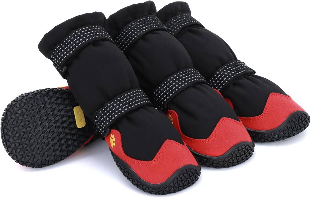 - 犬靴 ドッグブーツ (サイズ3:体重10~12kg) 防水 脱げにくい 滑り止め 散歩 雨の日 肉球保護 夜間反射テープ付 4個セット (レッド)