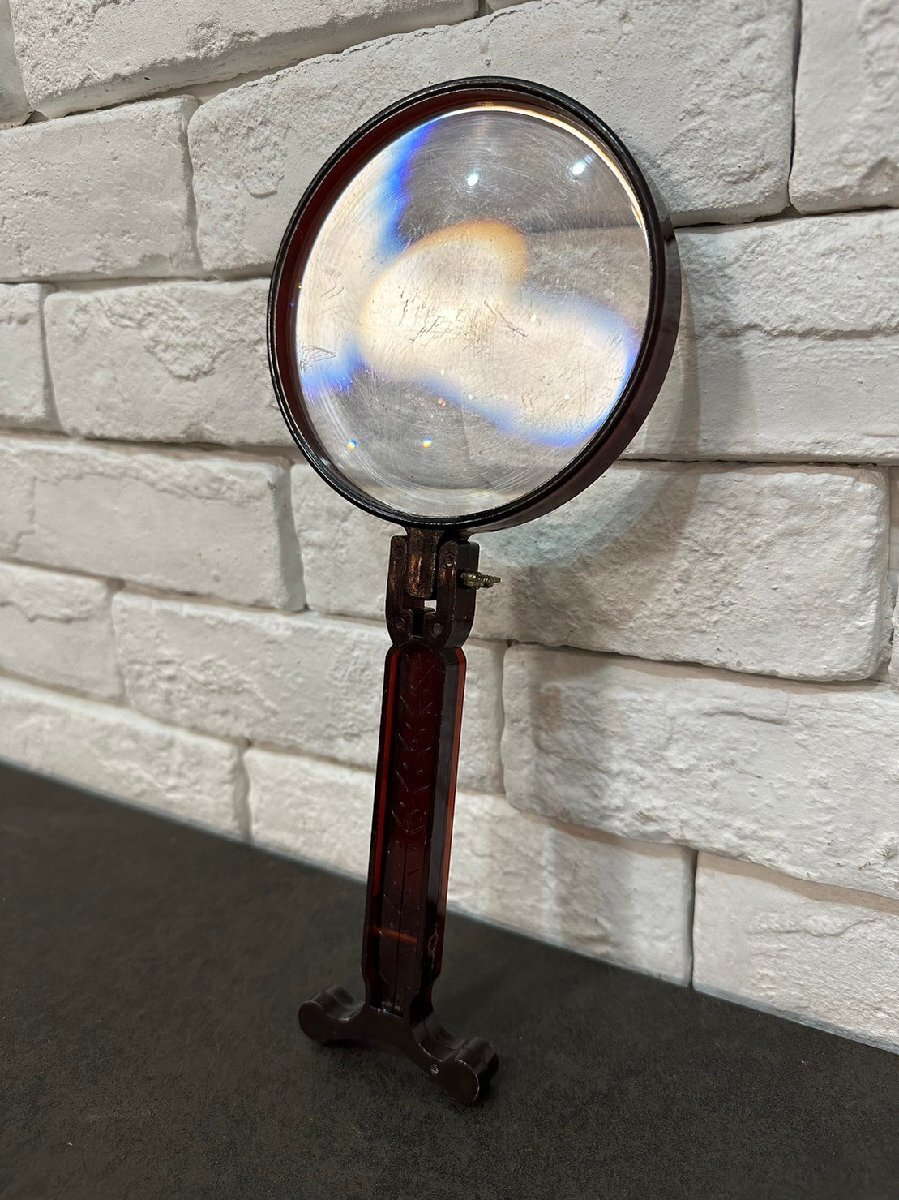 - 4532 ヨーロッパ買い付け アンティーク 虫眼鏡 オブジェー ブルックリン インダストリアル ルーペ 長さ28.5cm 幅12cm 奥行き2cm baa