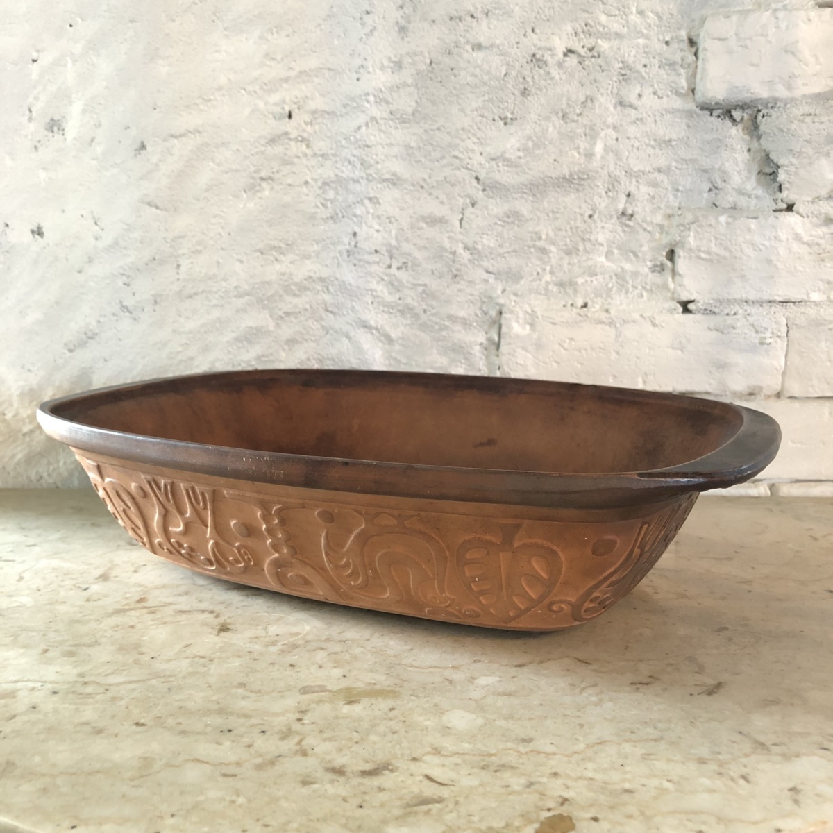 - 2457 ドイツ アンティーク オーブン皿 キッチン 陶器製 ROMERTOPF テラコッタ インテリア 高さ9cm 幅39cm 奥行き26.5cm bhh