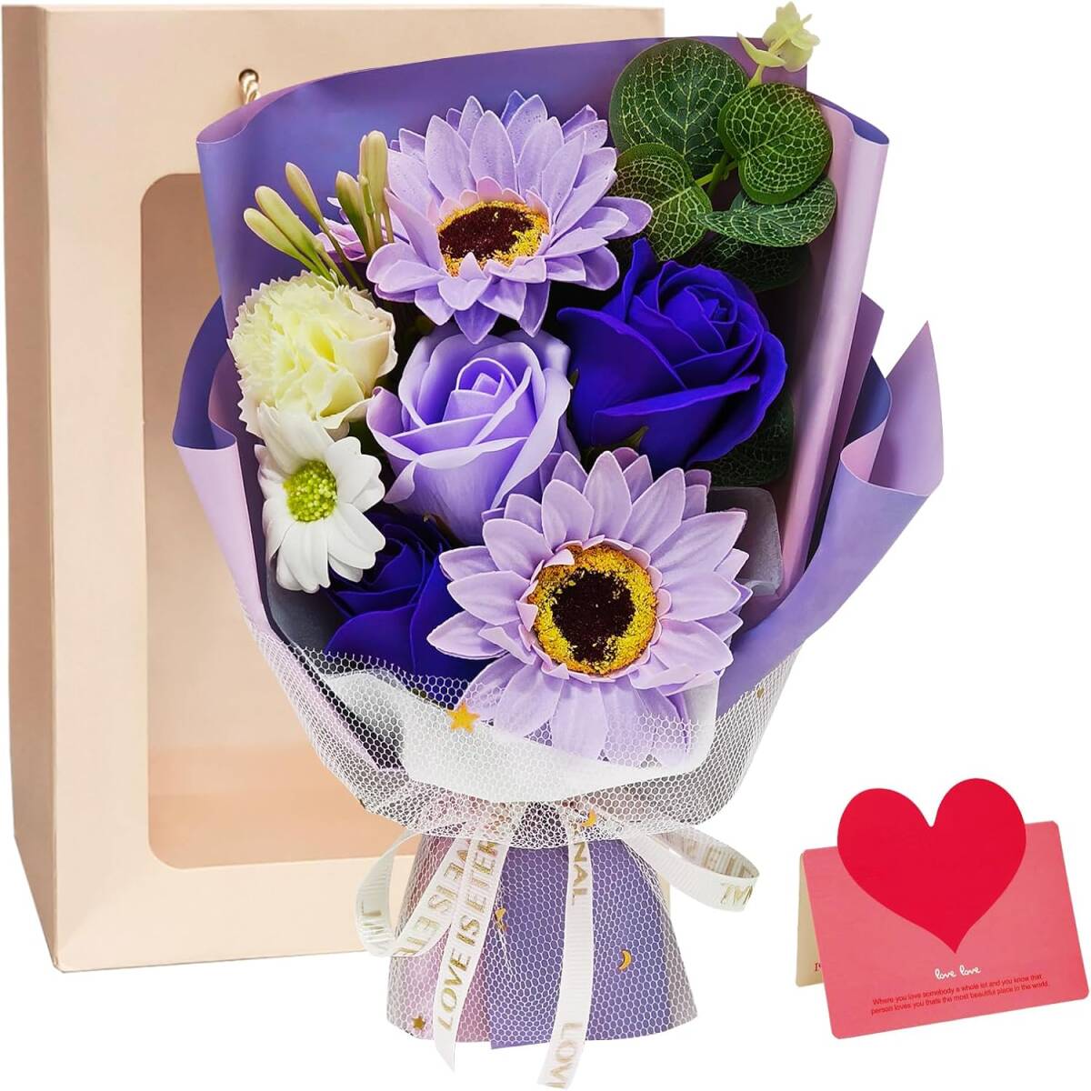 - 花束 ソープフラワー ヒマワリ 薔薇 誕生日 ギフト シャボンフラワー ブーケ