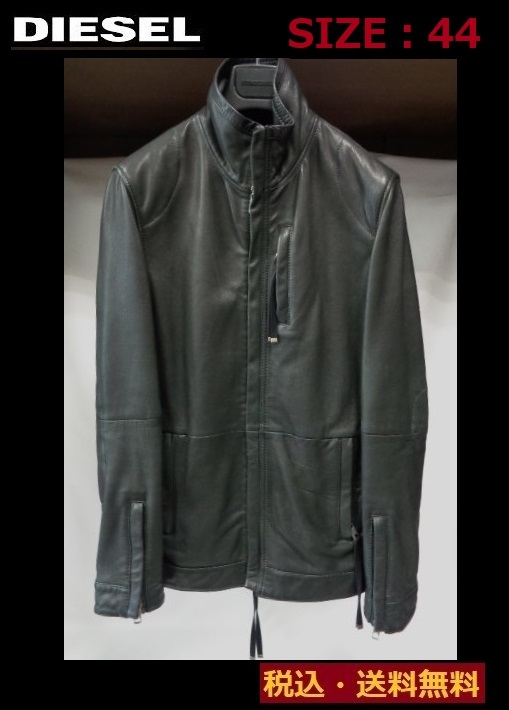 > 美品■DIESEL BLACK GOLD■ディーゼル■牛革■ライダーズジャケット サイズ44■ブラック■ハンガー付き■ 送料無料