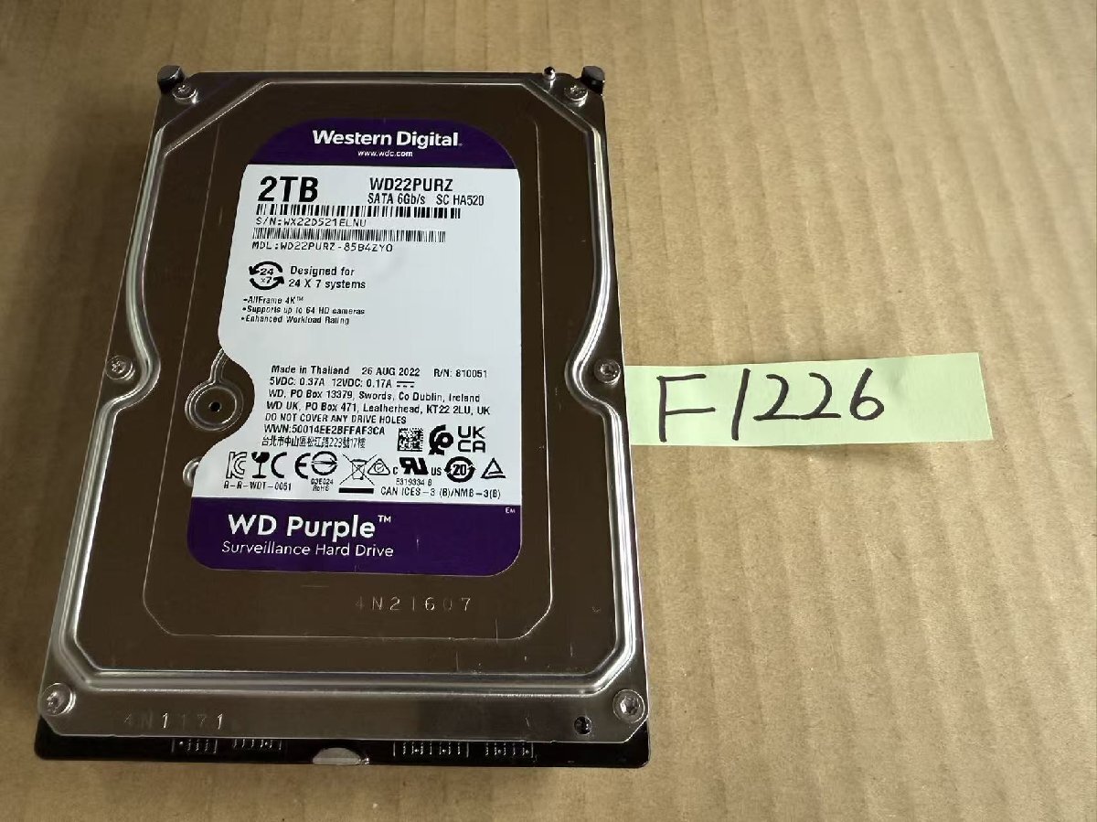 - 送料無料 WD22PURZ-85B4ZY0 HDD Purple 2TB 3.5インチ SATA HDD2TB 使用時間8563H★F1226