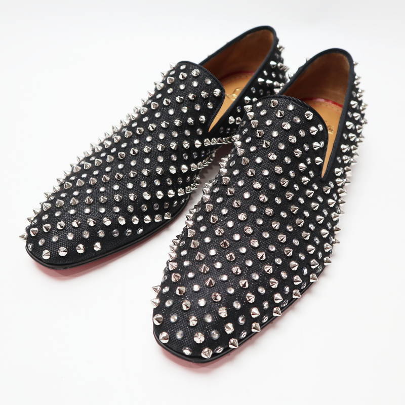 > Christian Louboutin クリスチャンルブタン スタッズ キャンバス スリッポン ローファー 41 ブラック S07-k114