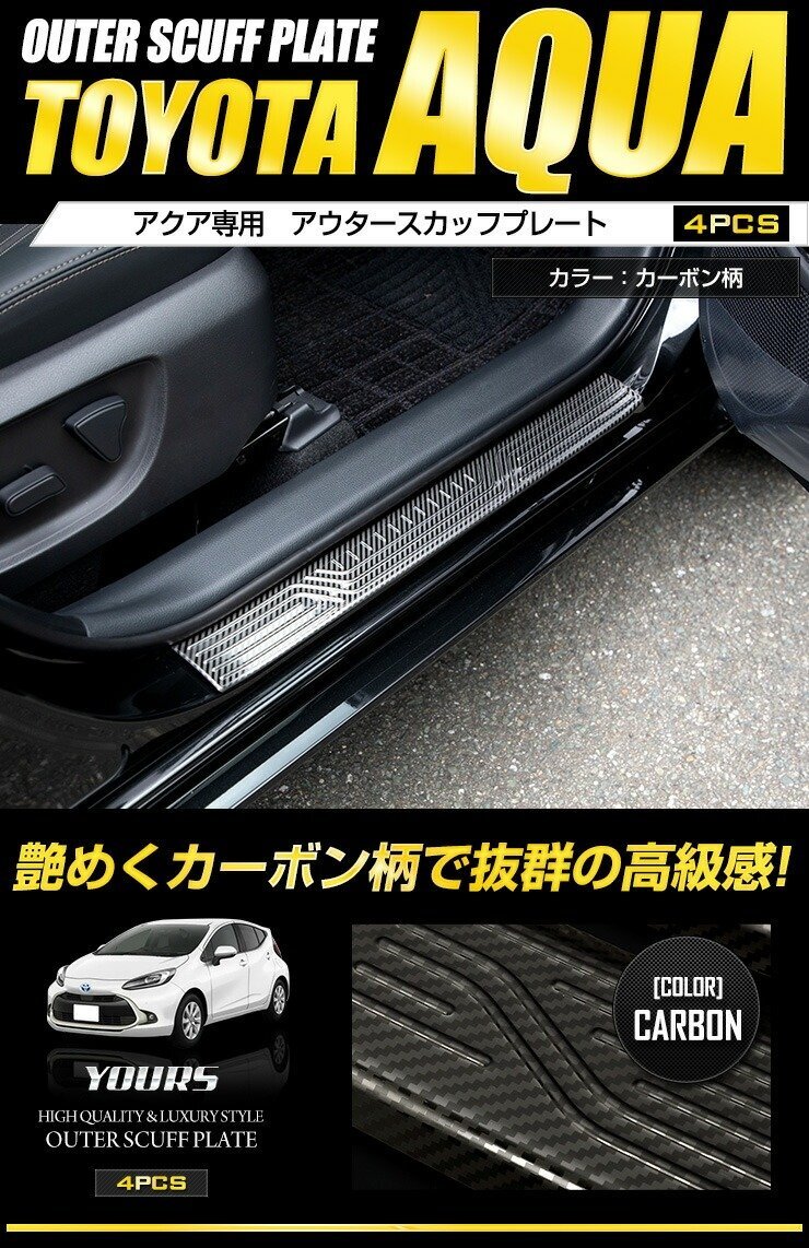 - 【訳あり品】 アクア 専用 アウタースカッフプレート 4PCS (カーボン柄) 外側 メッキ カスタム 内装 パーツ ステップ 傷防止 [OU]