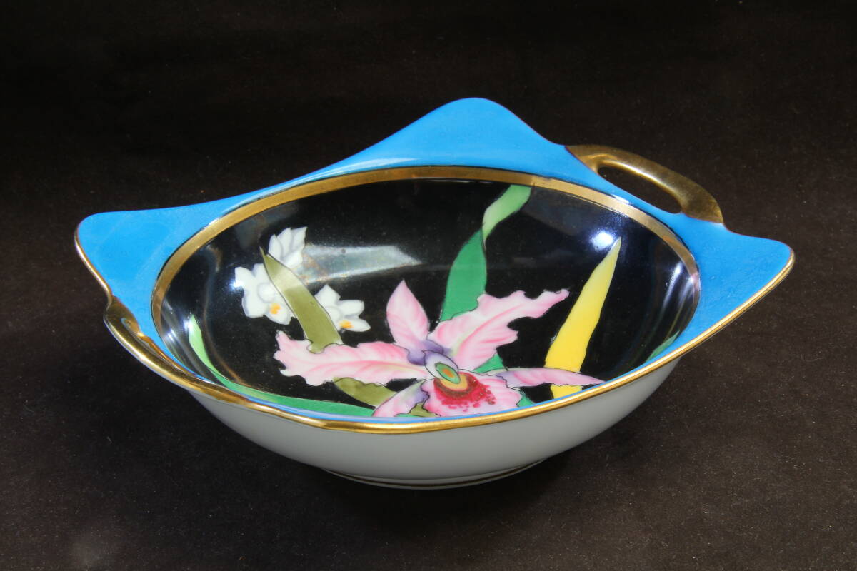 > 2699 オールドノリタケ アールデコ花文ボウル(ハンドル付)M-JAPAN大正 金彩縁取り 蘭