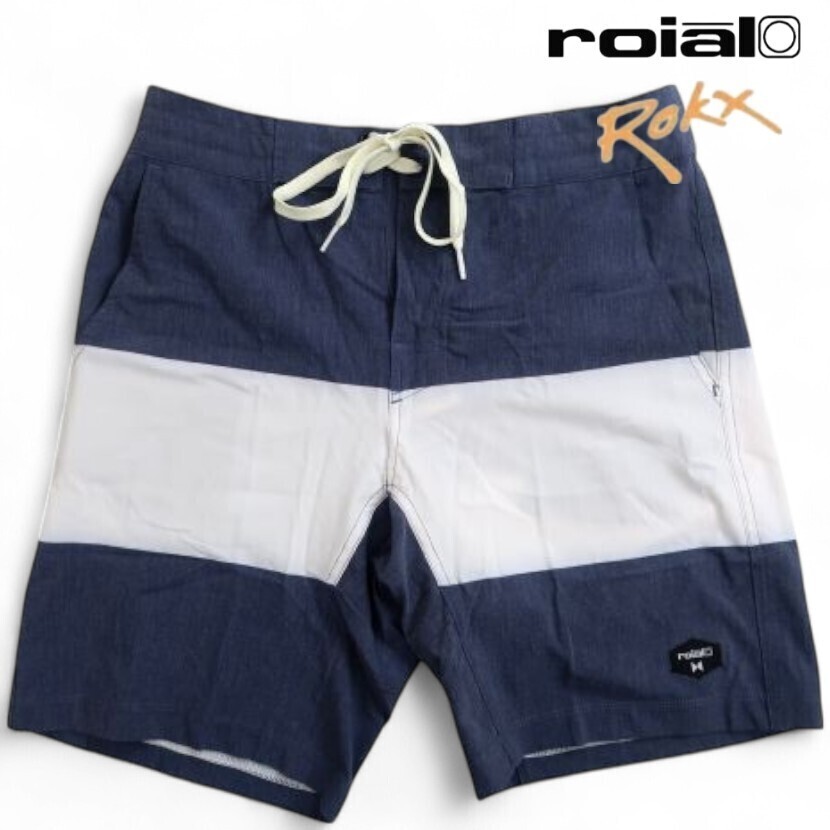 - roial Rokx ロイアル ロックス ボーダー コットン混 ストレッチ ボードショーツ サーフパンツ 水着 BS133 定1万 紺 28▲007▼20524k25