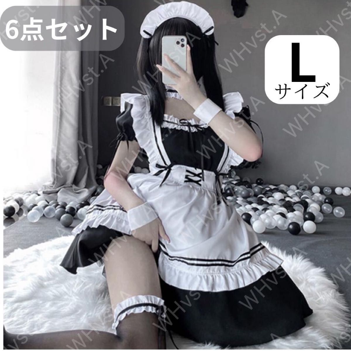 - メイド服 コスプレ ロリータ コスチューム セクシー L 6点セット ハロウィン キュート