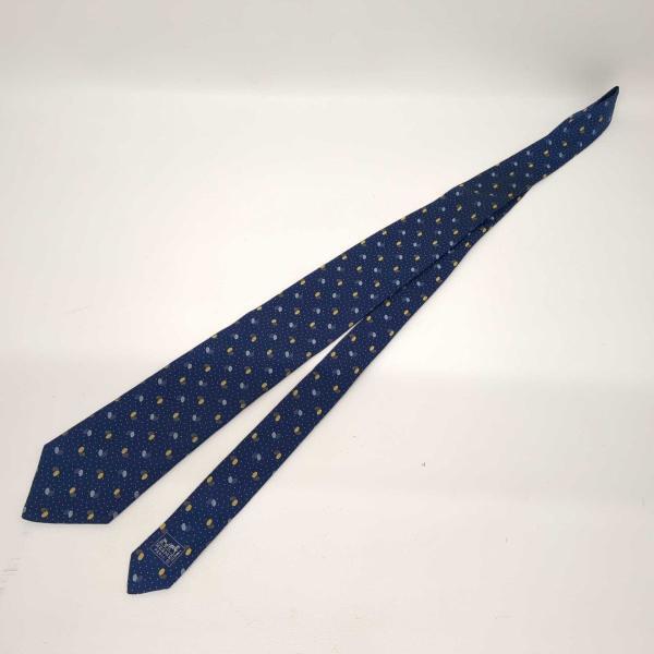 美品 エルメス ネクタイ ブルー ドット柄 シルク 全長153cm 剣先幅9cm 中古 古着 HERMES ◆2008拍卖