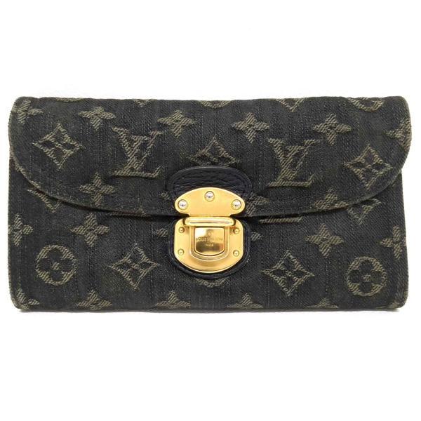 - ルイヴィトン 長財布 ポルトフォイユ・アメリア ノワール モノグラム・デニム M95512 LOUIS VUITTON 箱袋付 中古 ◆2008