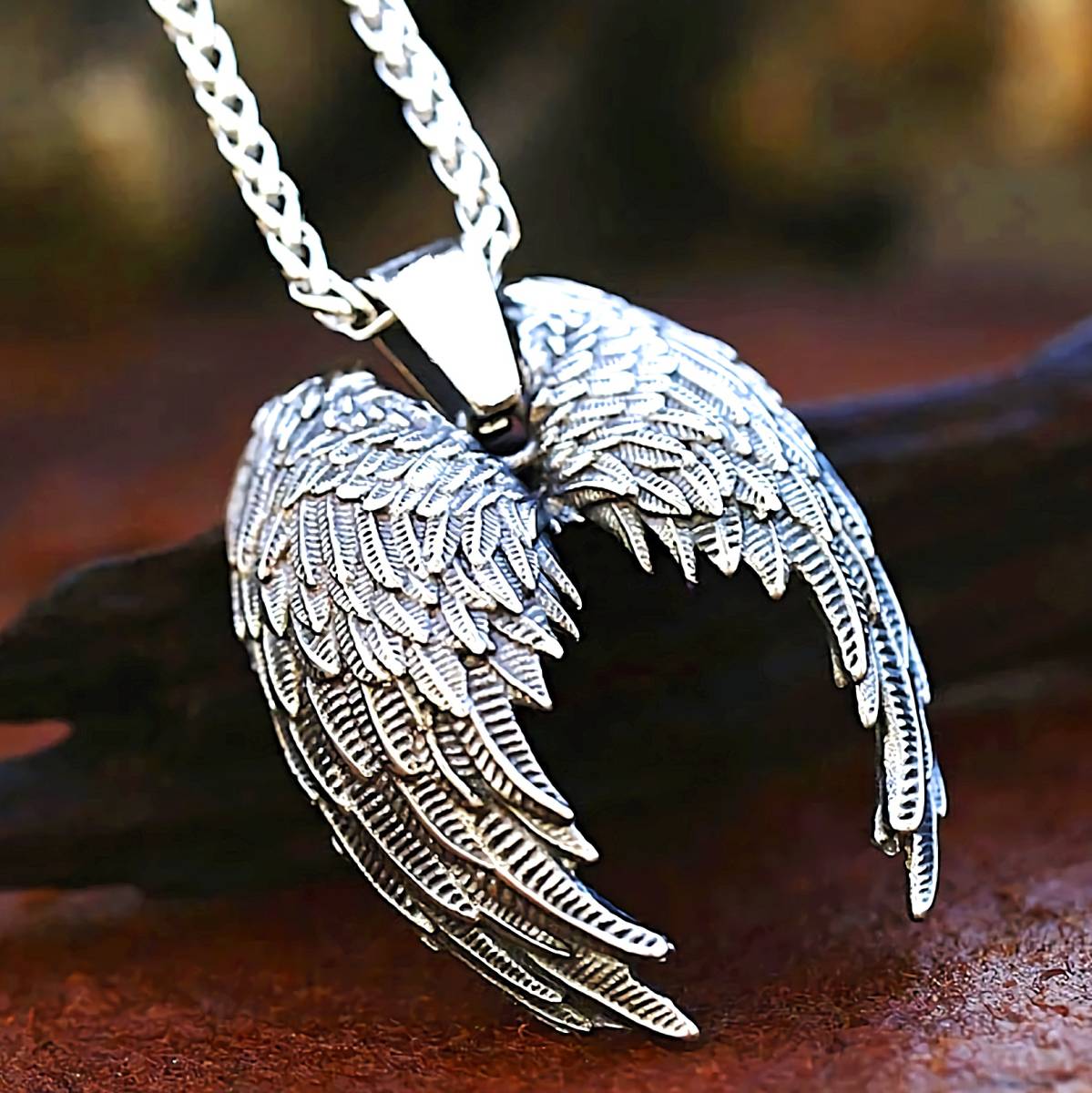 - 新品★送料無料★天使の翼フェザー 精緻彫刻大型パンク プラチナ仕上925シルバーネックレス誕生日プレゼント旅行連休秋ギフト国内発送