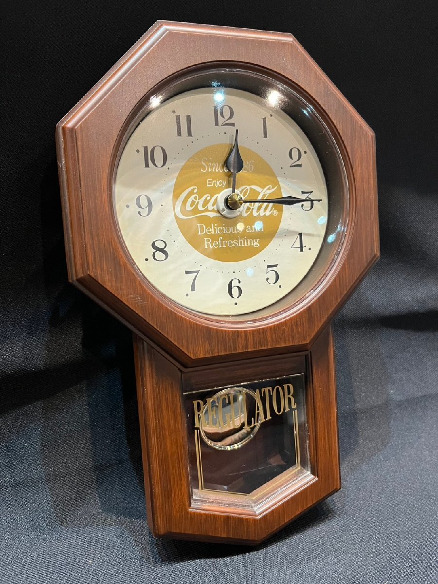 > ★動作OK! 希少! レア! ヴィンテージ! Coca-Cola コカ・コーラ 振り子時計 壁掛け時計 レギュレータークロック (約)幅16×奥5.5×H25.5㎝