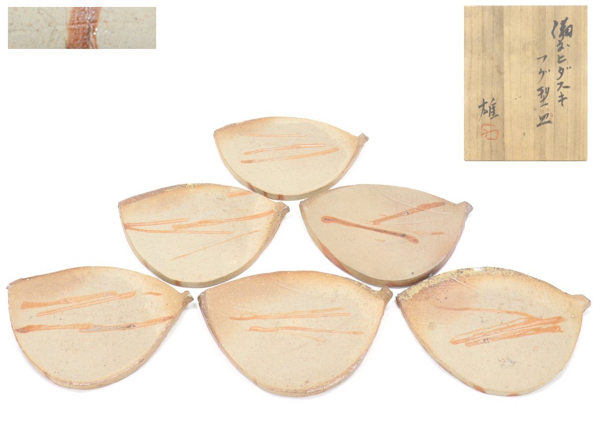 - 【蔵】備前焼 藤原雄 緋襷 フグ型皿 皿 六点 共箱 Y3578U