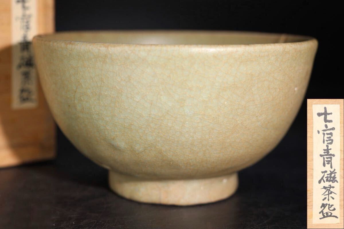 - 「 七官青磁 茶碗 」 木箱付 / 中国美術 茶器 煎茶道具 煎茶飾 検索: 龍泉窯 天龍寺 .G2719