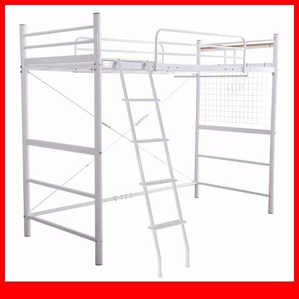 > ロフトベッド★宮棚 コンセント付き ロフトベッド/シングル/耐荷重120kg/高さ調整可/収納に便利 ネット ハンガーパイプ付き/ホワイト/a2
