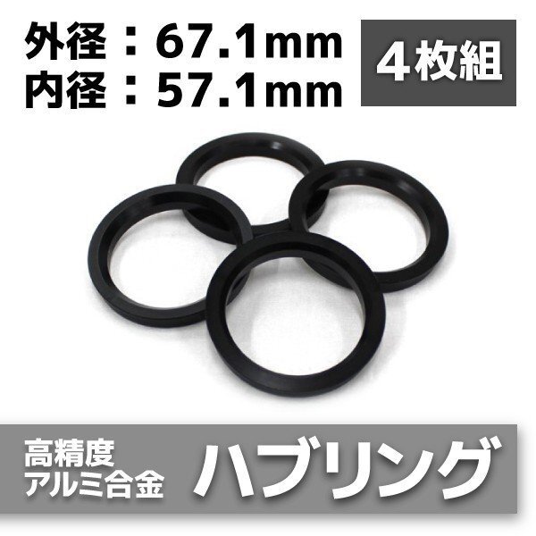 - ハブリング 67.1mm 57.1mm ツバ付 黒 4枚セット アルミ製 1台分