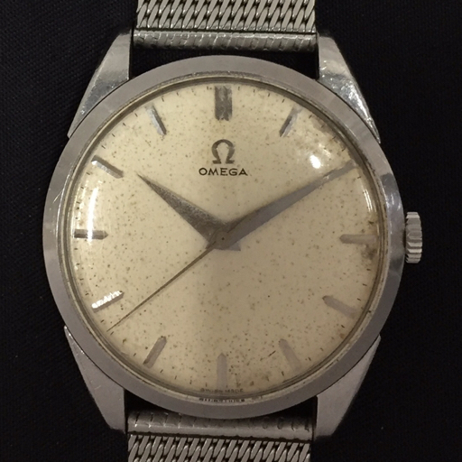 > オメガ 手巻き 機械式 腕時計 稼働品 ラウンドフェイス ホワイト文字盤 純正ブレス ファッション小物 OMEGA