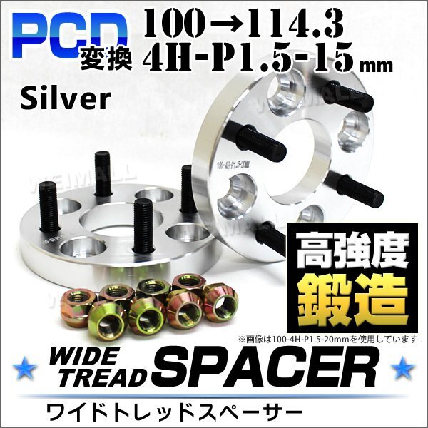 > Durax正規品 PCD変換 ワイドトレッドスペーサー 100→114.3/4H/P1.5/15mm 銀 4穴のPCD100mmからPCD114.3mm ホイールスペーサー