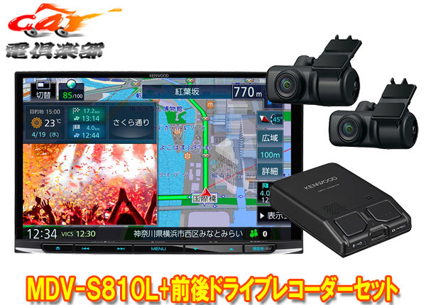 > 【取寄商品】ケンウッドMDV-S810L+DRV-MN970大画面8V型彩速ナビ+前後2カメラドライブレコーダーセット