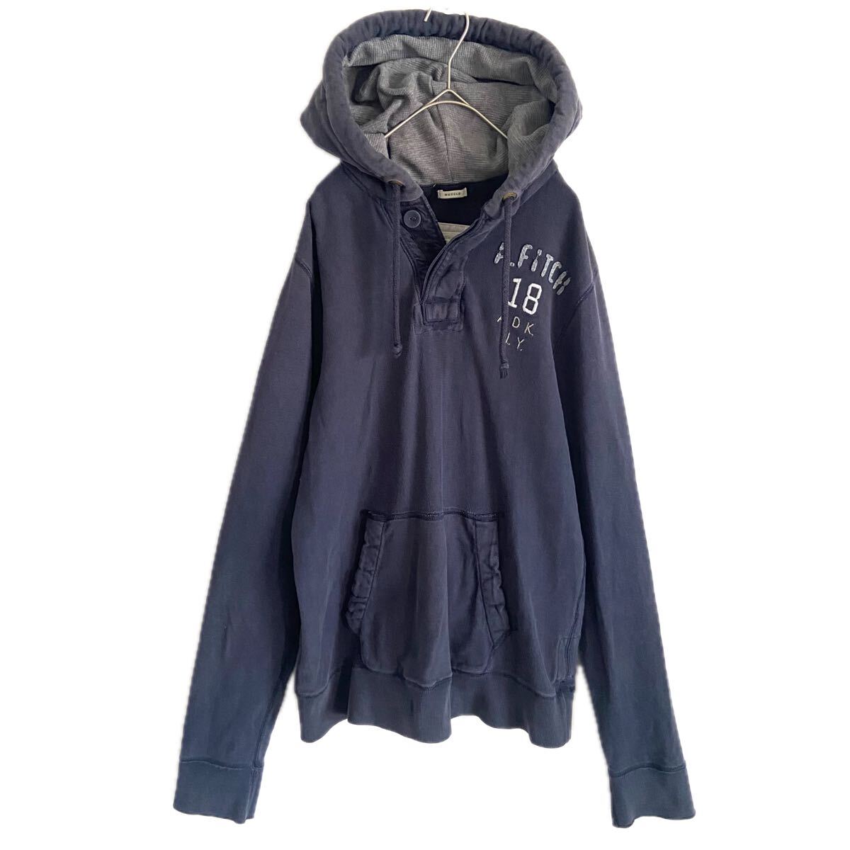 > 【アバクロンビー&フィッチ/ナンバリング】高級ジップアップパーカー/フーディー/紺/L表記/衝撃プライス!大人気ヴィンテージ加工!NB84