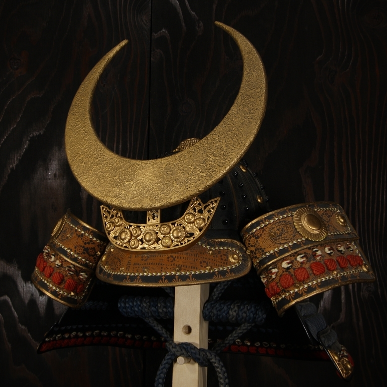 - 真向い月 大前立 三日月 木製 金塗 前立 前立て 甲冑 鎧 兜 検/ 仁王 赤鬼 鬼武者 鬼滅の刃 samurai armour k24 a504-mamu 24k