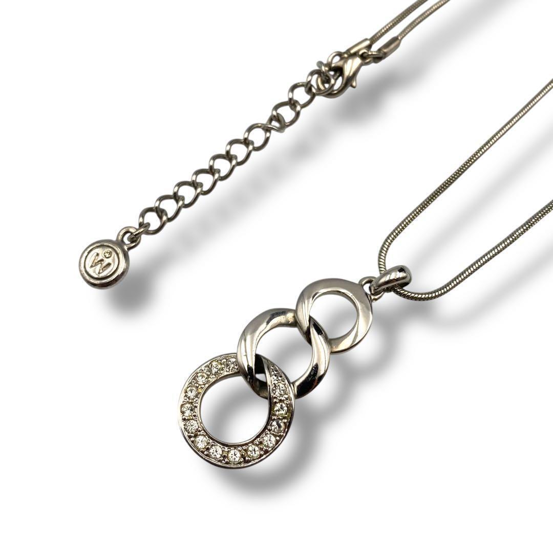 - 新品未使用級 スワロフスキー ネックレス スネークチェーン 3連リング シルバー