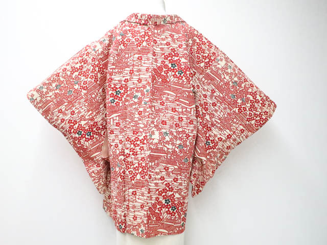 - 《古美術京松》【着物】 セミアンティーク 羽織 古典風景文 羽織紐付き 身丈約84.5cm 裄丈約65cm kyo7z05-484