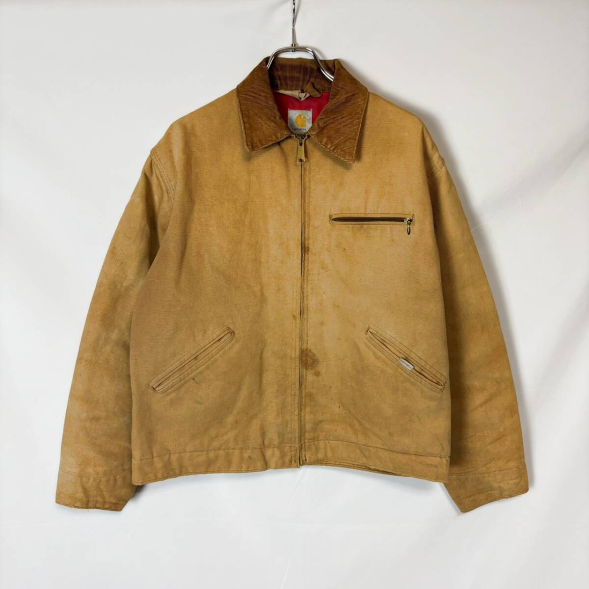 - 80s USA製 Carhatt DETROIT JACKET カーハート デトロイトジャケット レッドキルティングライナー フェード ボロ ベージュ系 M-L相当