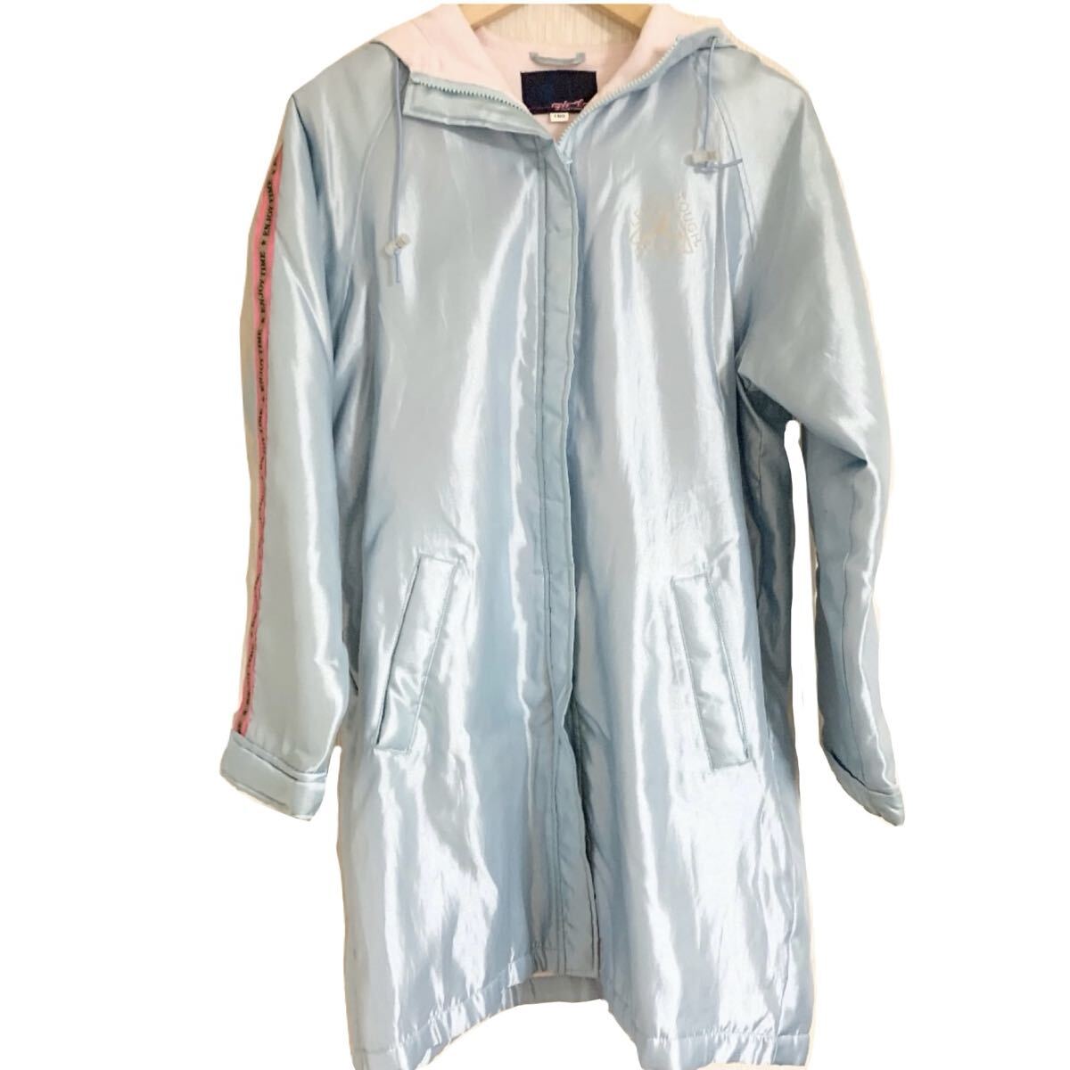 > 裏起毛中綿ベンチコート PLENTY TOUGH GIRL 防寒アウター ブルー 水色 フードあり 撥水 ロングコート スポーツ 陸上 サッカー フットサル