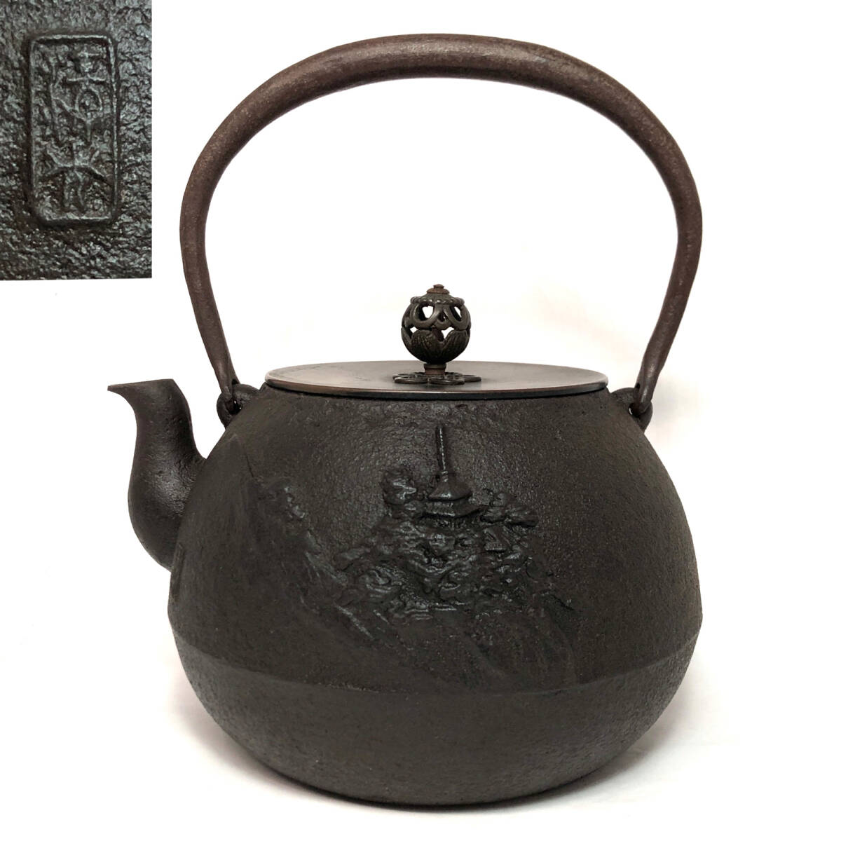 - *精光 鉄瓶 山水文 透摘み 宝珠型 盛上 浮出 茶道具 煎茶道具 湯沸 茶器 金属工芸 工芸品 骨董 清光?