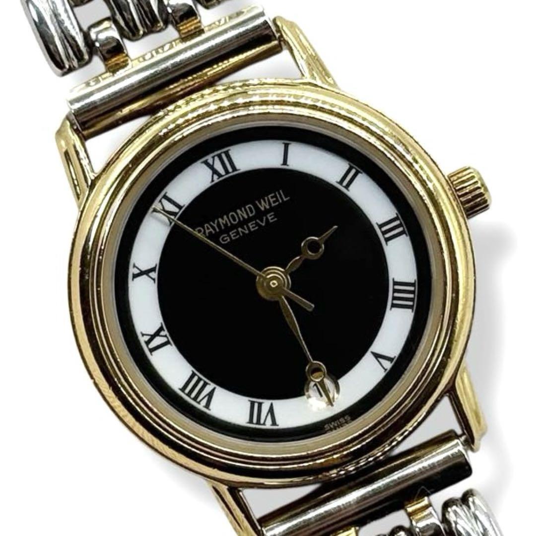 > 新品電池/稼働 レイモンドウィル 腕時計 ジュネーブ クォーツ デイト RAYMOND WEIL GENEVE ブラック ゴールド シルバー 4147