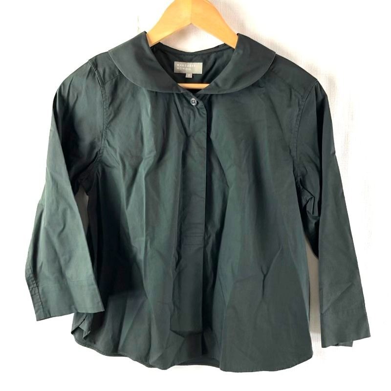- マーガレットハウエル MARGARET HOWELL ブラウス 長袖 コットンシルク混 替えボタン付き 日本製 カーキ Ⅱサイズ 2025090400392