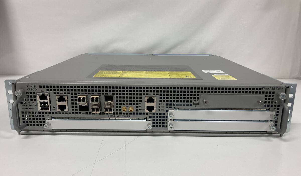 Cisco ASR 1002-X V06ネットワーク、Version 03.16.04b.S 、初期化済み、動作確認済みーーーーーーーーーーーーーーーーーーーーーーーーーー*02:15:35.878 UTC Fri Mar 1 2024NAME: "Chassis", DESCR: "Cisco ASR1002-X Chassis"PID: ASR1002-X , VID: V06, SN: FOX2023G15HNAME: "Power Supply Module 0", DESCR: "Cisco ASR1002 AC Power Supply"PID: ASR1002-PWR-AC , VID: V04, SN: DCB20154169NAME: "Power Supply Module 1", DESCR: "Cisco ASR1002 AC Power Supply"PID: ASR1002-PWR-AC , VID: V04, SN: DCB2032406RNAME: "module 0", DESCR: "Cisco ASR1002-X SPA Interface Processor"PID: ASR1002-X , VID: , SN: NAME: "SPA subslot 0/0", DESCR: "6-port Built-in GE SPA"PID: 6XGE-BUILT-IN , VID: , SN: NAME: "subslot 0/0 transceiver 0", DESCR: "GE LX"PID: GLC-LH-SMD , VID: 002 , SN: AVJ20313FBW NAME: "subslot 0/0 transceiver 1", DESCR: "GE SX"PID: GLC-SX-MMD , VID: 01 , SN: OPM203404EN NAME: "subslot 0/0 transceiver 2", DESCR: "GE SX"PID: GLC-SX-MMD , VID: 01 , SN: OPM203404EH NAME: "subslot 0/0 transceiver 3", DESCR: "GE SX"PID: GLC-SX-MMD , VID: 01 , SN: OPM203404EL NAME: "subslot 0/0 transceiver 4", DESCR: "GE SX"PID: GLC-SX-MMD , VID: 01 , SN: OPM203404EP NAME: "subslot 0/0 transceiver 5", DESCR: "GE T"PID: ABCU-5710RZ-CS5 , VID: B2 , SN: AGM2031416E NAME: "module R0", DESCR: "Cisco ASR1002-X Route Processor"PID: ASR1002-X , VID: V06, SN: JAE204103WNNAME: "module F0", DESCR: "Cisco ASR1002-X Embedded Services Processor"PID: ASR1002-X , VID: , SN: Sensor List: Environmental Monitoring Sensor Location State Reading PEM Vout P0 Normal 12 V DC PEM Vin P0 Normal 97 V AC Temp: PEM P0 Normal 23 Celsius Temp: FC P0 Fan Speed 65% 20 Celsius PEM Vout P1 Normal 12 V DC PEM Vin P1 Normal 97 V AC Temp: PEM P1 Normal 26 Celsius Temp: FC P1 Fan Speed 65% 20 Celsius VCP 1: VX1 R0 Normal 1496 mV VCP 1: VX2 R0 Normal 747 mV VCP 1: VX3 R0 Normal 1198 mV VCP 1: VP1 R0 Normal 5011 mV VCP 1: VP2 R0 Normal 3281 mV VCP 1: VP3 R0 Normal 2490 mV VCP 1: VP4 R0 Normal 1786 mV VCP 1: VH R0 Normal 11909 mV VCP 2: VX2 R0 Normal 1048 mV VCP 2: VX4 R0 Normal 895 mV VCP 2: VX5 R0 Normal 1102 mV VCP 2: VP1 R0 Normal 1491 mV VCP 2: VP2 R0 Normal 941 mV VCP 2: VP3 R0 Normal 1103 mV VCP 2: VP4 R0 Normal 1099 mV VCP 2: VH R0 Normal 11919 mV Temp: Inlet 1 R0 Normal 20 Celsius Temp: Outlet 1 R0 Normal 24 Celsius Temp: Octeon R0 Normal 30 Celsius Temp: Outlet 2 R0 Normal 24 Celsius Temp: CPU Die R0 Normal 27 Celsius VDP 1: VX1 R0 Normal 1486 mV VDP 1: VX4 R0 Normal 951 mV VDP 1: VP1 R0 Normal 990 mV VDP 1: VP2 R0 Normal 3279 mV VDP 1: VP3 R0 Normal 991 mV VDP 1: VP4 R0 Normal 1785 mV VDP 1: VH R0 Normal 11993 mV VDP 2: VX2 R0 Normal 5000 mV VDP 2: VP1 R0 Normal 1490 mV VDP 2: VP2 R0 Normal 843 mV VDP 2: VP3 R0 Normal 2477 mV VDP 2: VP4 R0 Normal 1199 mV VDP 2: VH R0 Normal 12003 mV Temp: DPOutlet R0 Normal 27 Celsius Temp: DP Inlet R0 Normal 24 Celsius Temp: WOLV Die R0 Normal 36 Celsius Temp: YODA Die R0 Normal 38 CelsiusCisco IOS XE Software, Version 03.16.04b.S - Extended Support ReleaseCisco IOS Software, ASR1000 Software (X86_64_LINUX_IOSD-UNIVERSALK9-M), Version 15.5(3)S4b, RELEASE SOFTWARE (fc1)Technical Support: http://www.cisco.com/techsupportCopyright (c) 1986-2016 by Cisco Systems, Inc.Compiled Mon 17-Oct-16 19:43 by mcpreCisco IOS-XE software, Copyright (c) 2005-2016 by cisco Systems, Inc.All rights reserved. Certain components of Cisco IOS-XE software arelicensed under the GNU General Public License ("GPL") Version 2.0. Thesoftware code licensed under GPL Version 2.0 is free software that comeswith ABSOLUTELY NO WARRANTY. You can redistribute and/or modify suchGPL code under the terms of GPL Version 2.0. For more details, see thedocumentation or "License Notice" file accompanying the IOS-XE software,or the applicable URL provided on the flyer accompanying the IOS-XERouter uptime is 3 minutesUptime for this control processor is 4 minutesSystem returned to ROM by reloadSystem image file is "bootflash:/asr1002x-universalk9.03.16.04b.S.155-3.S4b-ext.SPA.b"Last reload reason: Reload CommandThis product contains cryptographic features and is subject to UnitedStates and local country laws governing import, export, transfer anduse. Delivery of Cisco cryptographic products does not implythird-party authority to import, export, distribute or use encryption.Importers, exporters, distributors and users are responsible forcompliance with U.S. and local country laws. By using this product youagree to comply with applicable laws and regulations. If you are unableto comply with U.S. and local laws, return this product immediately.A summary of U.S. laws governing Cisco cryptographic products may be found at:http://www.cisco.com/wwl/export/crypto/tool/stqrg.htmlIf you require further assistance please contact us by sending email toLicense Level: adventerpriseNext reload license Level: adventerprisecisco ASR1002-X (2RU-X) processor (revision 2KP) with 3729028K/6147K bytes of memory.Processor board ID FOX2023G15H6 Gigabit Ethernet interfaces32768K bytes of non-volatile configuration memory.8388608K bytes of physical memory.6594559K bytes of eUSB flash at bootflash:.Configuration register is 0x2102Building configuration...Current configuration : 1411 bytesservice timestamps debug datetime msecservice timestamps log datetime msecno platform punt-keepalive disable-kernel-coreplatform hardware throughput level 5000000multilink bundle-name authenticatedlicense udi pid ASR1002-X sn JAE204103WNlicense boot level adventerprisespanning-tree extend system-idinterface GigabitEthernet0/0/0interface GigabitEthernet0/0/1interface GigabitEthernet0/0/2interface GigabitEthernet0/0/3interface GigabitEthernet0/0/4interface GigabitEthernet0/0/5interface GigabitEthernet0ip tftp source-interface GigabitEthernet0 11 drwx 16384 Oct 14 2016 08:05:23 +00:00 lost+found178113 drwx 4096 Mar 1 2024 02:12:33 +00:00 .prst_sync 12 -rw- 1427 Mar 1 2024 02:08:44 +00:00 octeon_pci_console_dev0_20240301_020842.log388609 drwx 4096 Oct 14 2016 08:06:47 +00:00 .instal