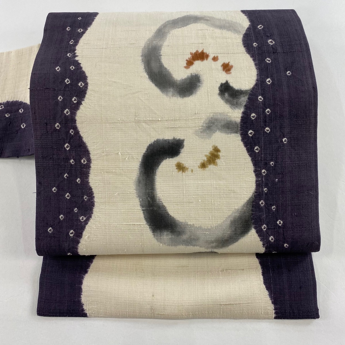 - 【美品】 名古屋帯 秀品 紬地 花 幾何学模様 クリーム 正絹 【中古】