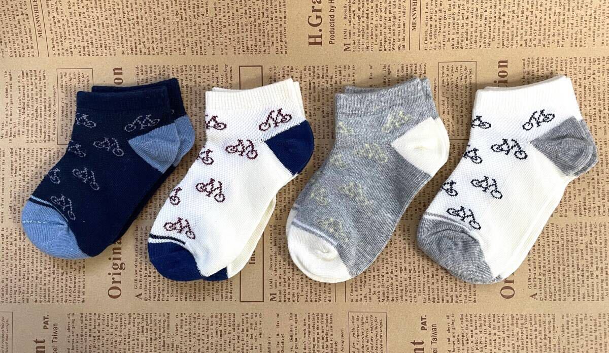 - 靴下 ベビー 4足セット ショートソックス11cm-12cm 1才未満 くつした ベビー服 ベビープレゼント ギフト 出産祝い 可愛い 自転車柄