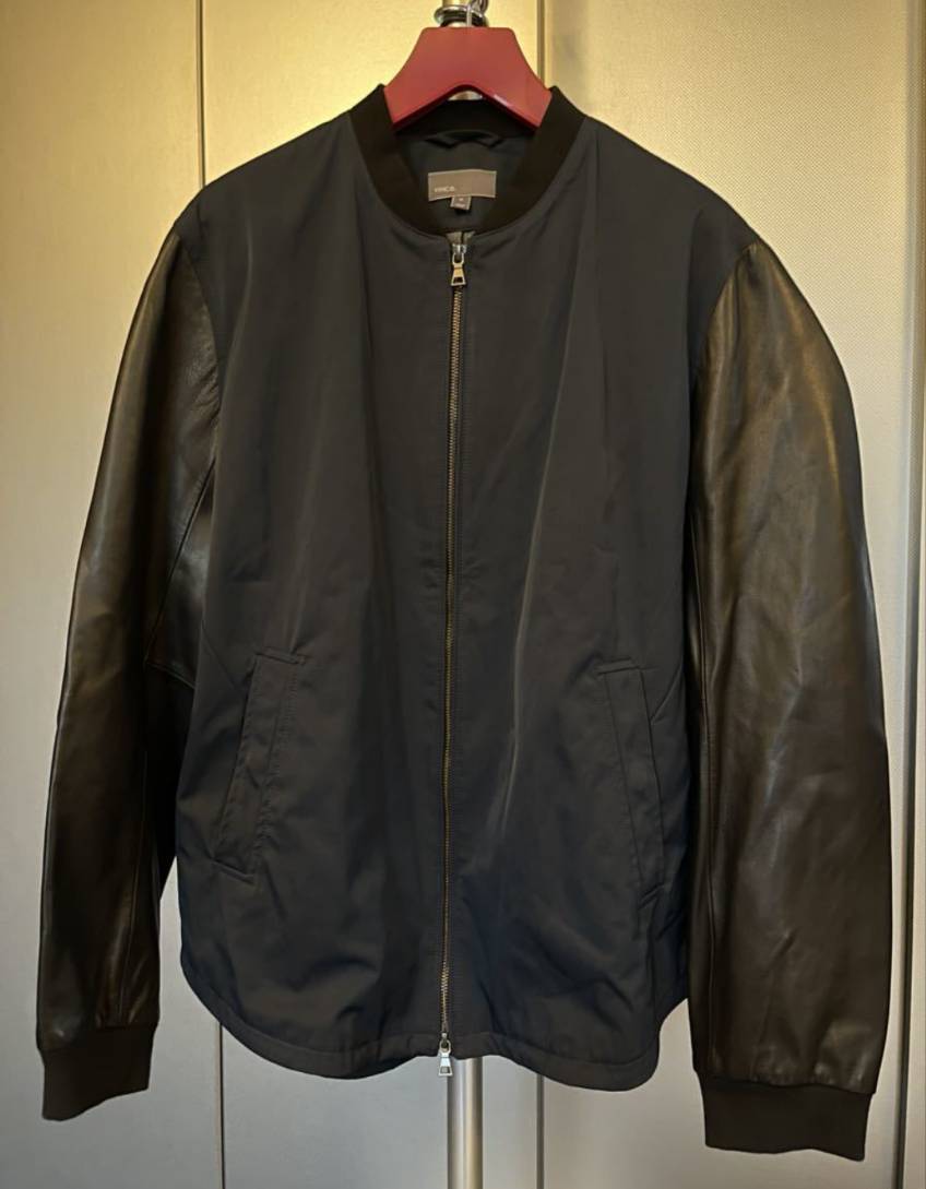 - ★VINCE. MA-1 レザー 紺 黒 ダブルジップ メンズ サイズXL