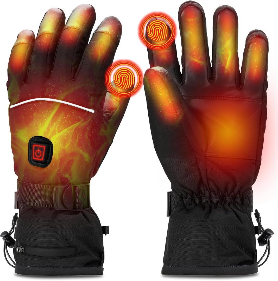 - 電熱グローブ グローブ 防寒手袋 ブラック Lサイズ 防水 タッチパネル対応 6000mahバッテリー 防寒対策 裏起毛 登山 除雪 スキー