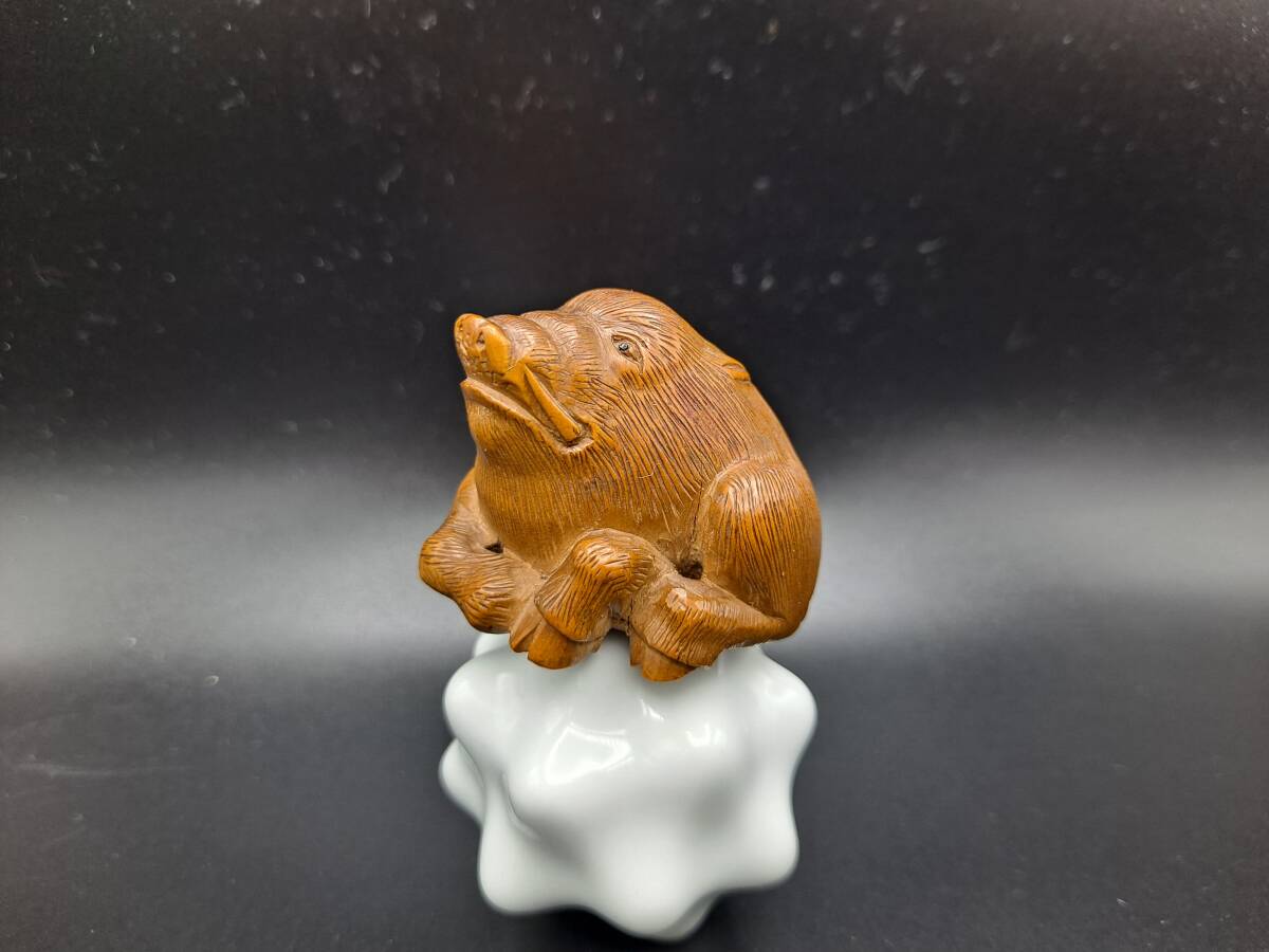 - 【3】19世紀〜明治期「猪」意匠「清」銘 黄楊根付 伊勢・鈴木正直派
