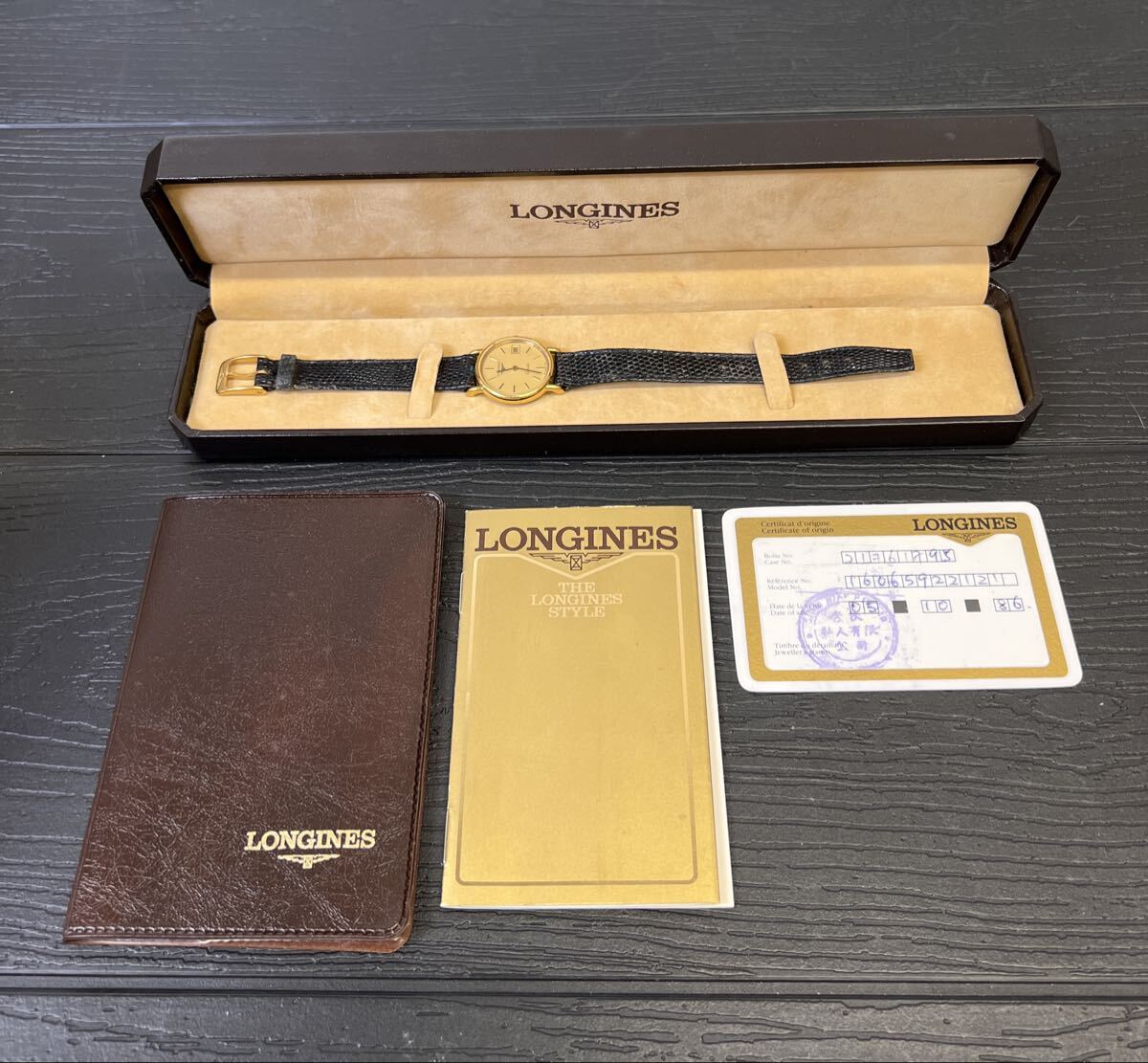 - 【X-88】 LONGINES ロンジン 腕時計 クォーツ 手巻き 箱付 ギャラ有 ゴールド系 動作未確認