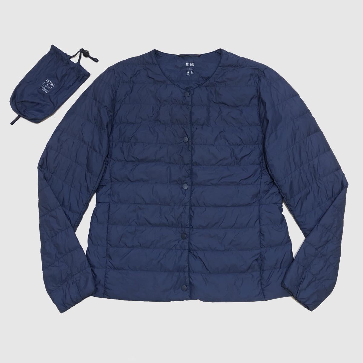 - 【送料360円】UNIQLO ユニクロ ウルトラライトダウンコンパクトジャケット ノーカラー レディース Mサイズ ネイビー 古着 HW-16