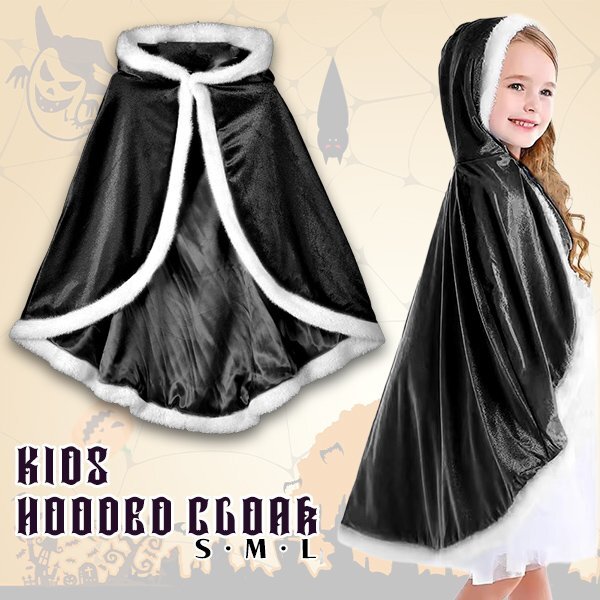 - 子供用 フード付きマント ブラック ケープ ハロウィン コスプレ 仮装 黒 魔女 魔法使い 吸血鬼 キッズコスチューム なりきり 誕生日 コート