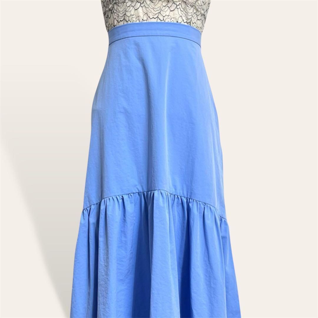 - 美品 ローリーズファーム ライトブルー ラウンドティアード マキシ丈 ロングフレアスカート F レディース 4388
