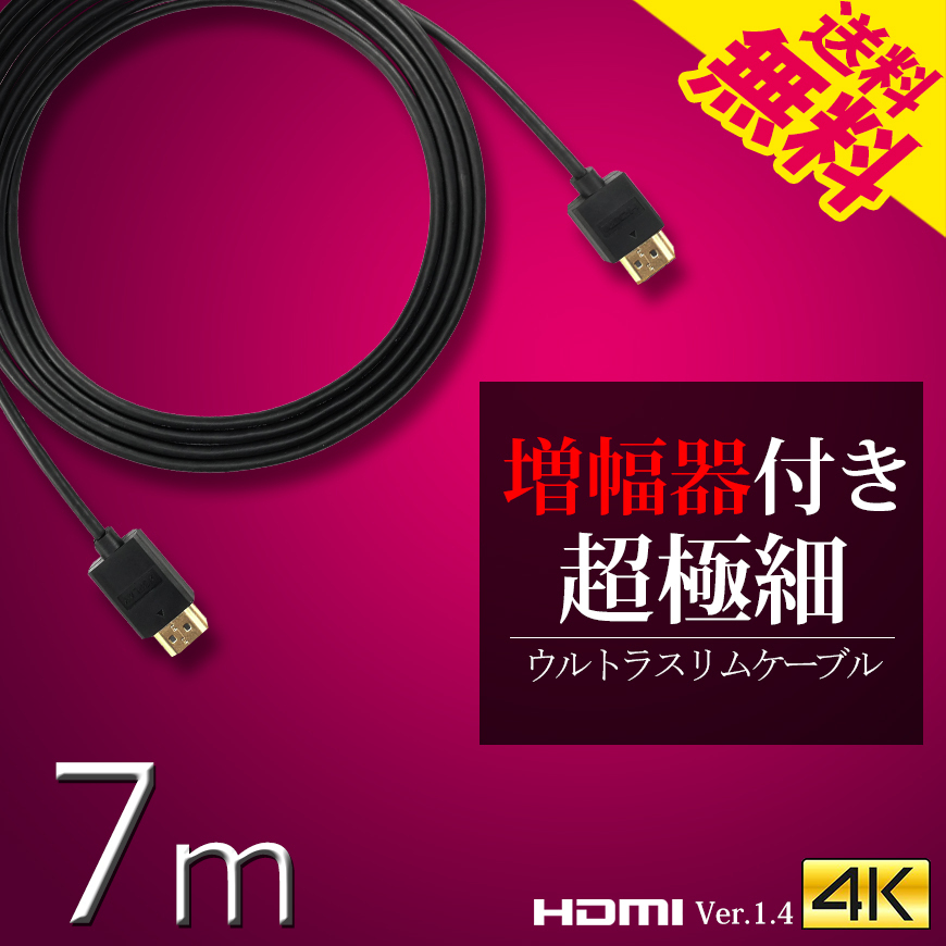 - HDMIケーブル ウルトラスリム 7m 700cm 超極細 直径約4mm Ver1.4 4K Nintendo switch PS4 XboxOne 増幅器内蔵 ネコポス 送料無料