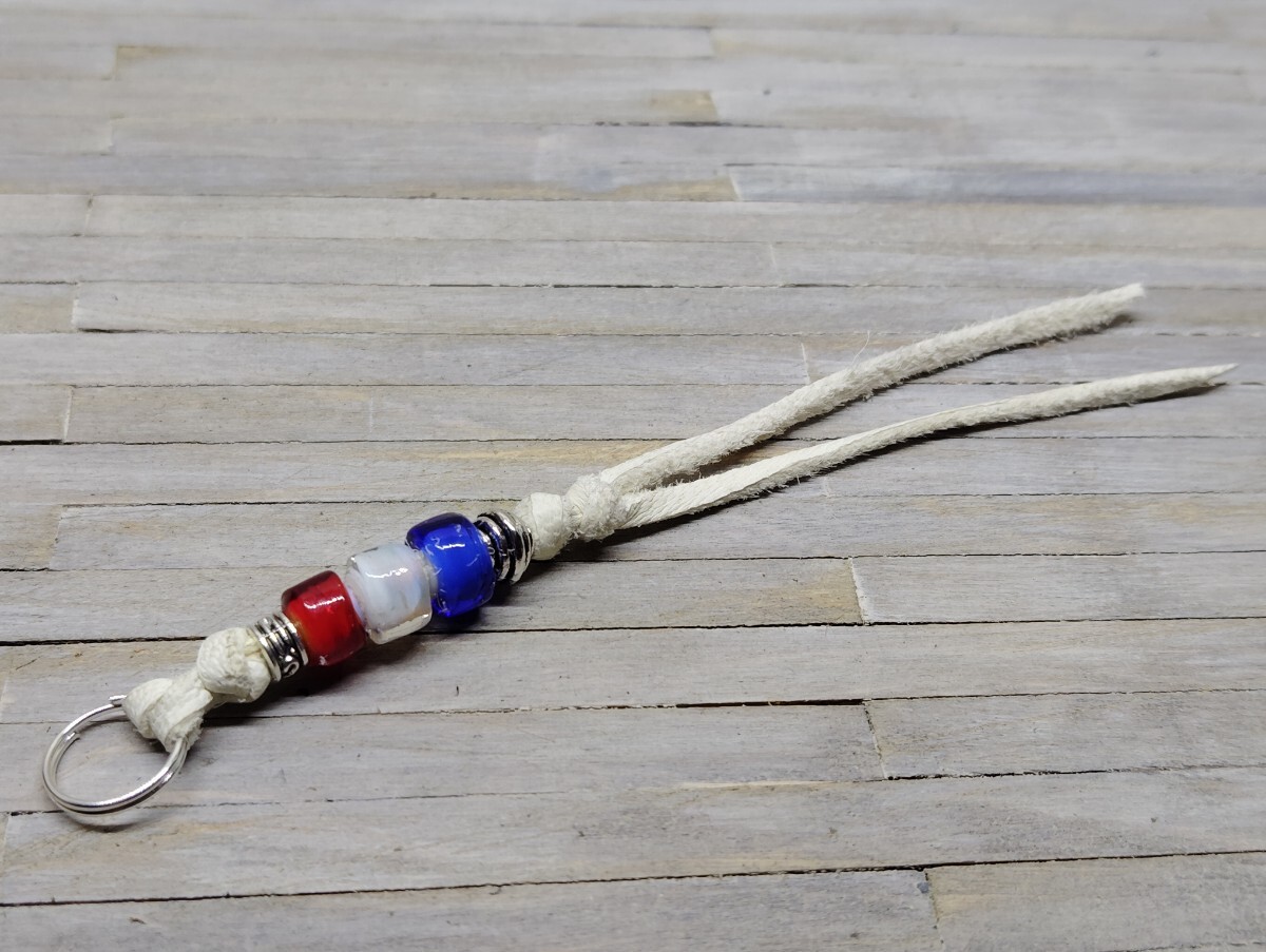 - アンティークビーズ ホワイトハーツ ファスナー引き手 キーホルダー 革ジャン バッグ ポーチ リュック107