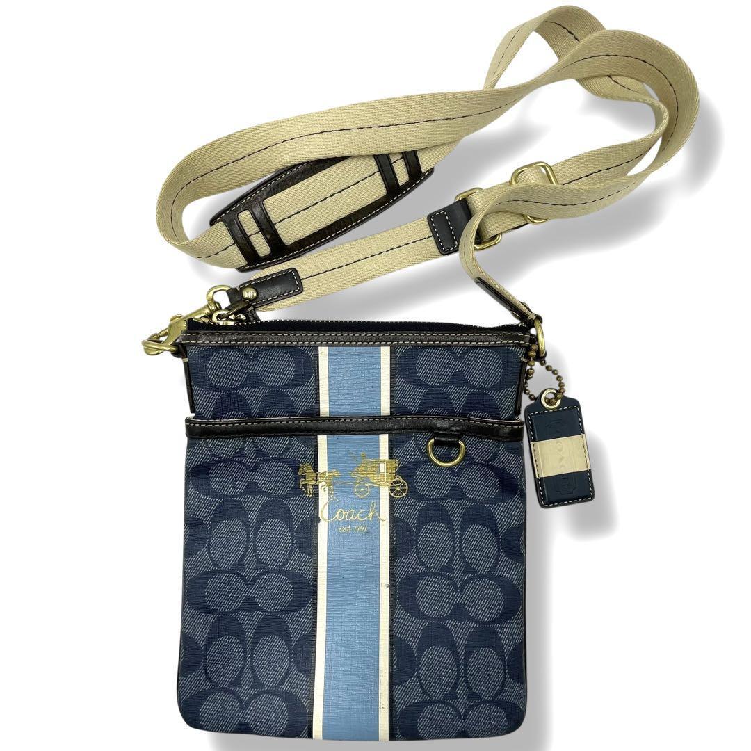 - COACH コーチ ショルダーバッグ サコッシュ 薄型 デニム調 ヘリテージライン メンズ レディース 斜めがけ PVC レザー シンプル おしゃれ