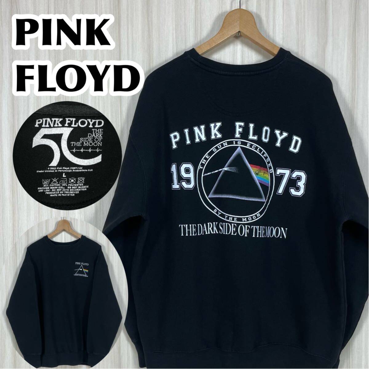 > ☆希少☆PINK FLOYD THE DARKSIDE OF THE MOON ピンクフロイド 狂気 バックプリント バンドスウェット トレーナー L 裏起毛 ブラック 古着