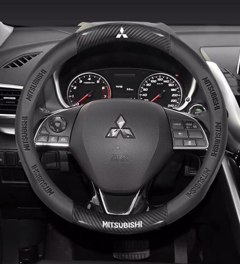 - 三菱 専用 ハンドルカバー ステアリングカバー 円型 本革 上質な逸品 カーボン調 5色選択可