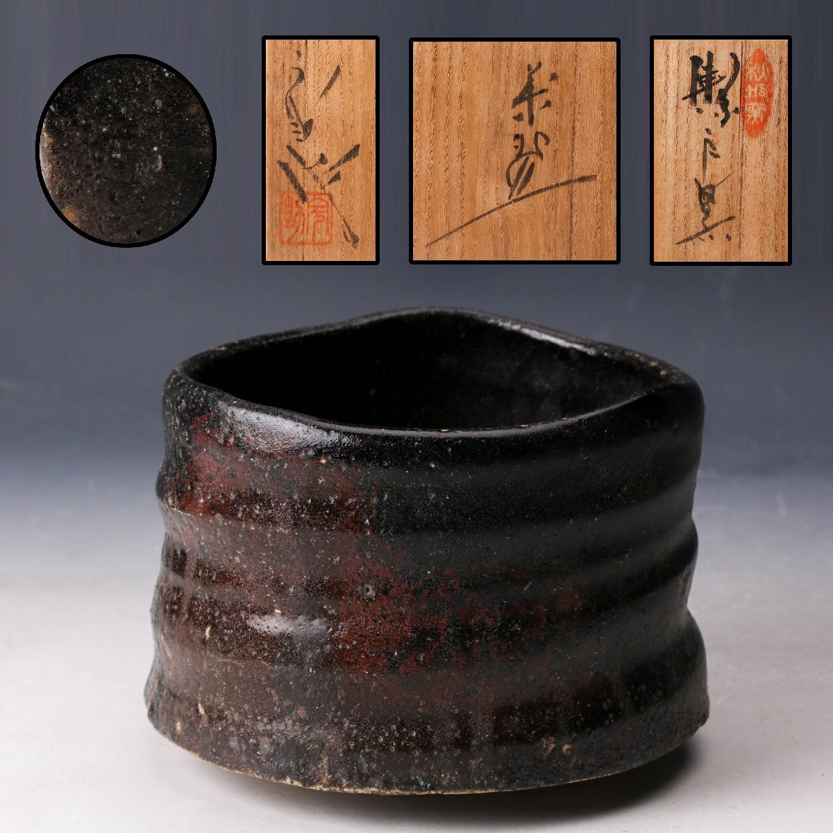 【佳香】加藤宇助 秀逸作 瀬戸黒茶碗 共箱 共布 茶道具 本物保証