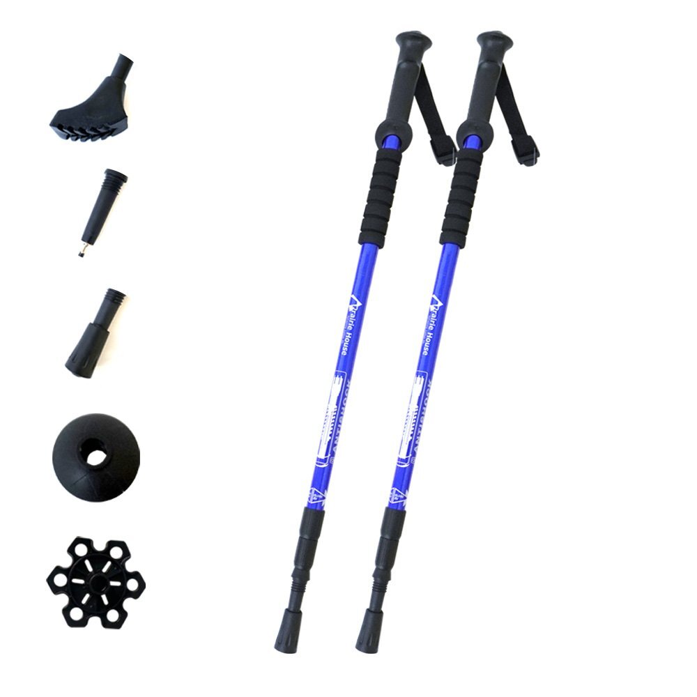- Prairie House トレッキングポール アンチショック 2本セット アルミ合金 軽量 伸縮式 収納袋 登山 ハイキング アウトドア ブルー XO847L